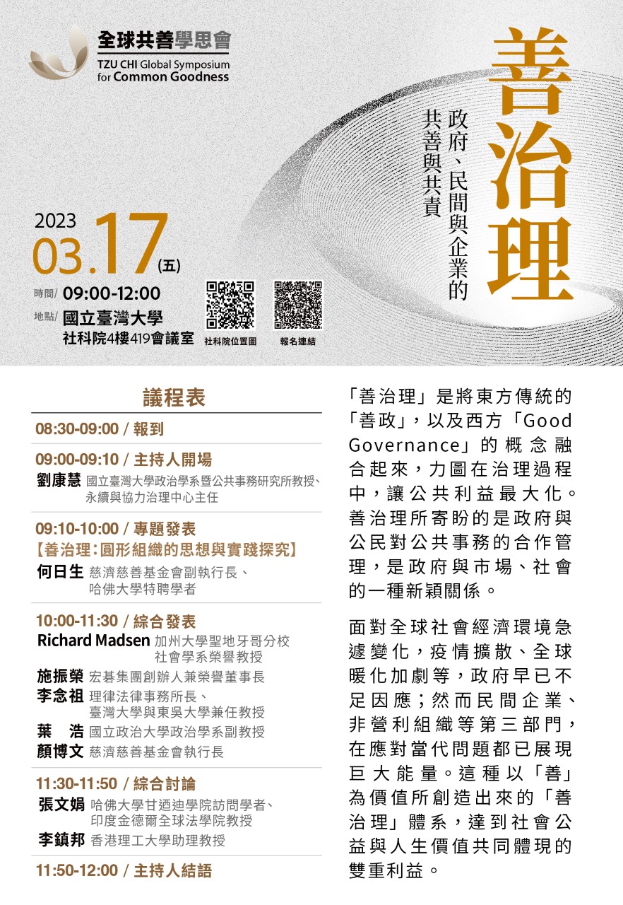 🔅主辦:慈濟慈善基金會、國立臺灣大學政治學系、國立臺灣大學公共事務研究所、永續與協力治理中心