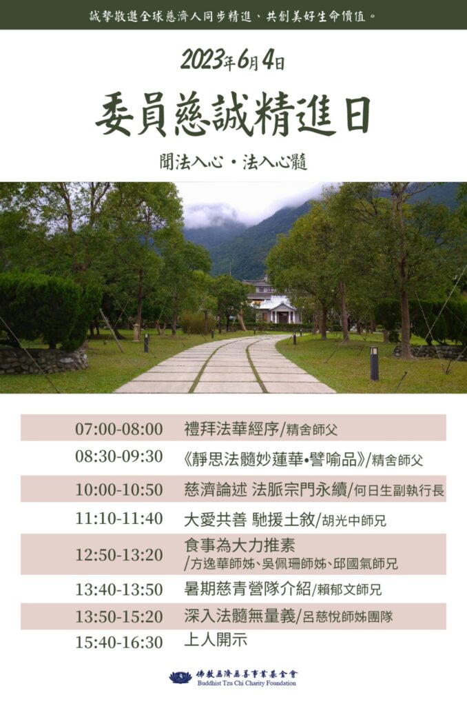 「法譬如水」,佛法需要在人間… 藉由參與精進日的過程,讓心浸潤在點滴的法水中 給自己一日的沈靜,用精進洗滌心中的無明煩惱 期待全球慈濟人聞法入心、將法落實與生活中…