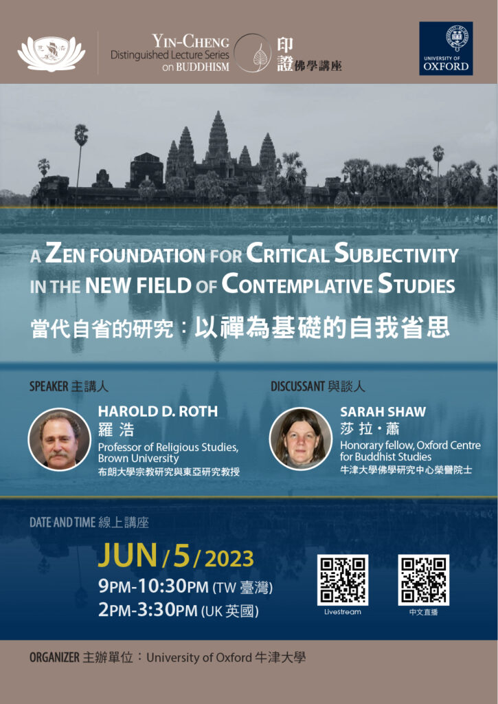 冥想沉思學(Contemplative Studies)是一個新興的學術領域,它補充了傳統的客觀性學術模式,即通過文化和歷史背景來進行研究的方法,同時強調透過省思自我的經驗來分析在文獻中所記錄的經驗。這種方法獲得冥想科學研究的支持;其中值得探討的是這種方法的核心精神,其實源自於現代禪宗的自我省思修練。這場講座將會依序介紹並詳細說明這些概念。