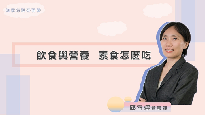 營隊課程_飲食與營養 素食怎麼吃? 瀏覽人數: 527 Kindly go to setting page and check the option "Place them manually" 內容簡介: 課程主題:營隊課程_飲食與營養 素食怎麼吃? 課程講師:邱雪婷 營養師 課程長度:59分鐘 課程簡介: 本課程邀請台灣素食營養學會秘書長邱雪婷營養師,分享素食要怎麼吃?以及有哪些營養細節需要注意,雪婷營養師也分享在學術研究中的實證及素食者普遍容易缺乏的營養素,這是一堂不可錯過的課程! 關鍵字 #植物性蛋白、B12、維生素D、澱粉、鈣質、WholeFoodPlantBased、WFPB、全食植物性飲食 相關連結 No items found 相關下載 No items found 詳細資料 分類:加素行動研習, 推素好課程, 環保教育, 開放資源, 非素不可 版本說明:2022年04月加素行動研習營 資料日期:2022-04-30 作者:邱雪婷 營養師 開放對象:培訓委員, 培訓慈誠, 委員, 常住師父, 慈誠, 榮董, 社區志工, 職工, 見習委員 資料來源:慈善基金會執行長辦公室推素團隊