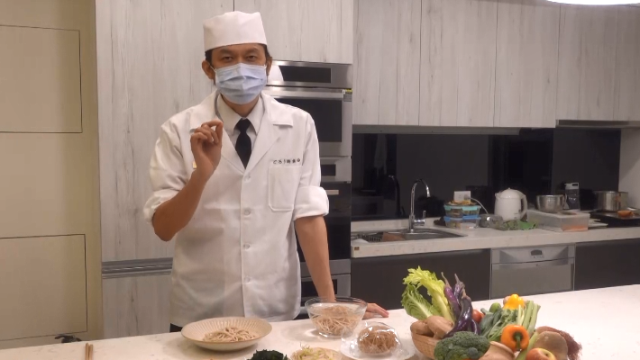 本影片為《主廚到我家》系列影集,由高雄志工團隊籌備拍攝,提供營養菜單,教導「蔬食涼麵」烹飪方式。