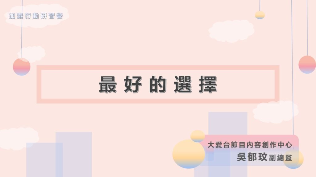 課程講師:大愛電視台節目內容創作中心副總監 吳郁玟