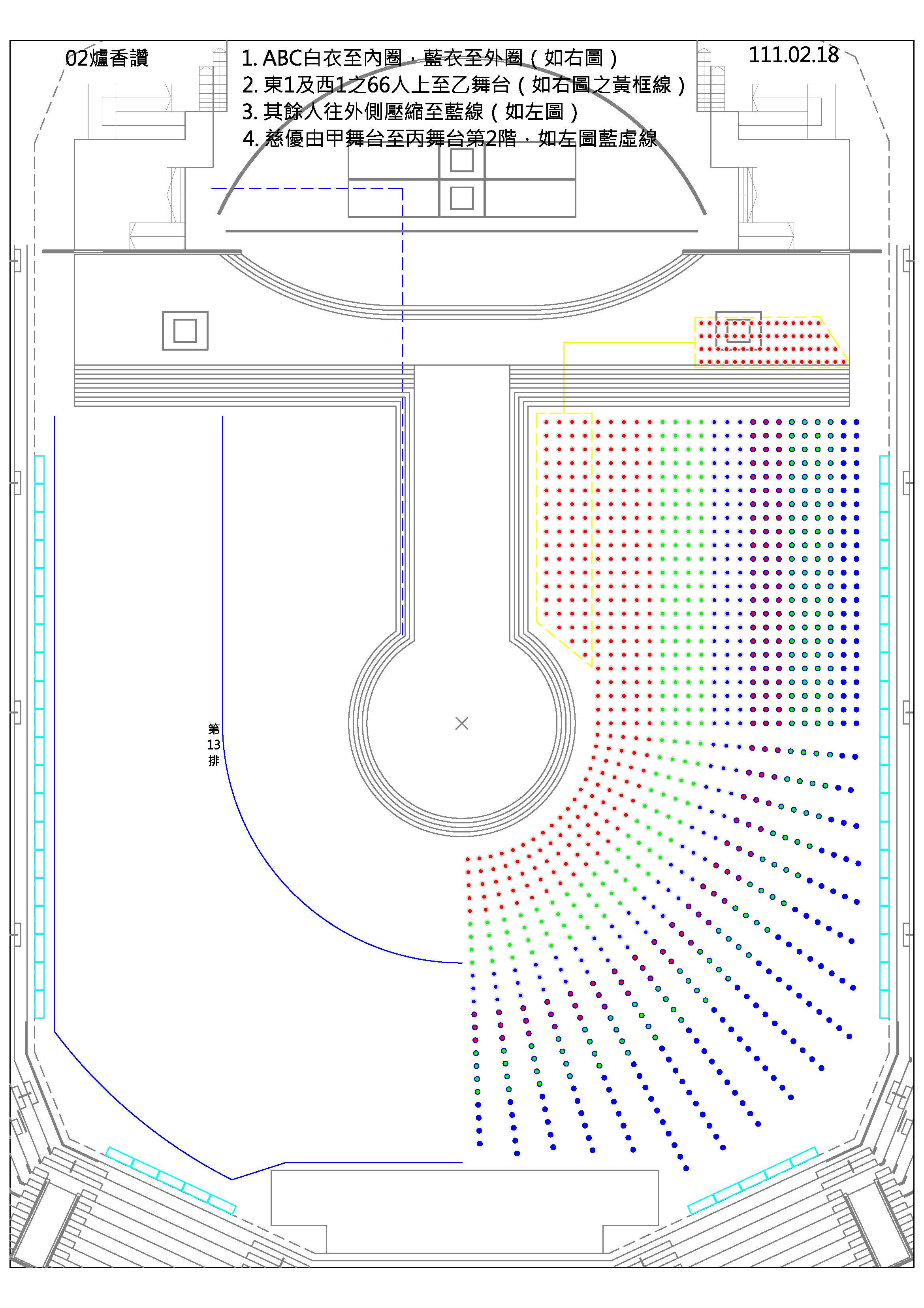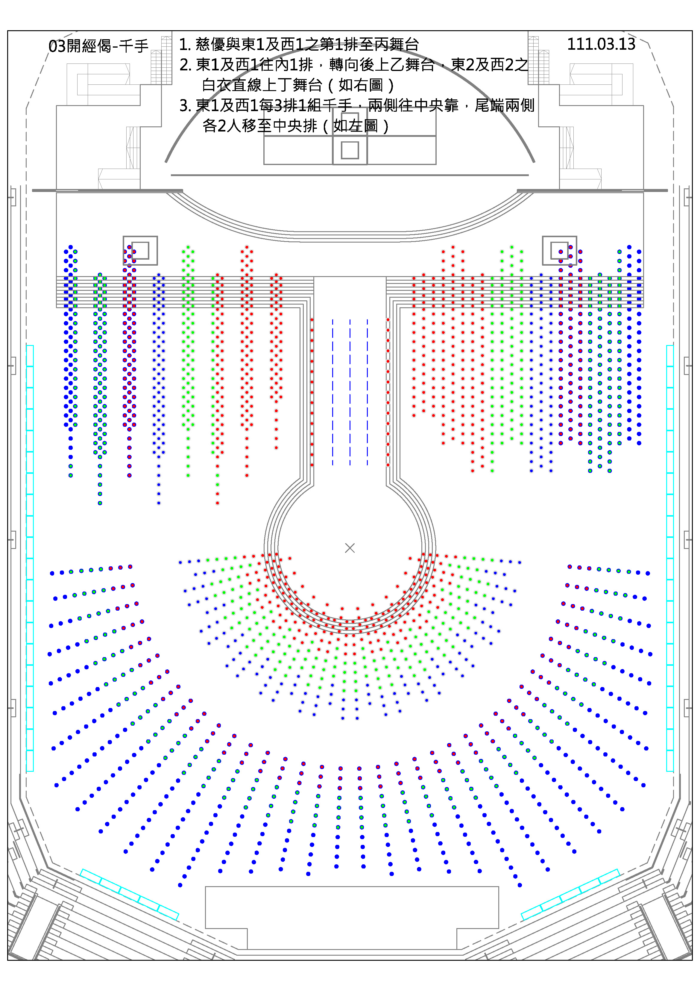 【靜思法髓妙蓮華】經藏演繹第一大段資源 瀏覽人數: 9,077 Kindly go to setting page and check the option "Place them manually" 內容簡介: 請菩薩留意:入經藏示範帶有大幅更新,並增加細流、娃娃圖及A+年輕人入經藏示範帶。 請點擊下方[藍字]即可進行各相關文件檢視及下載。 一、說明會及品書會導讀簡報 (一).2022-靜思妙蓮華品書會 簡報_靈山法會.PDF (二).2022-靜思法髓妙蓮華品書會_簡報_靈山法會(修)_en.PDF (感恩美國慈濟國際弘法利生室協助翻譯) (三).海外入經藏第二次說明會(公告).PDF (四).2022-靜思妙蓮華品書會_簡報_德行品0402.PDF (五).2022-靜思法髓妙蓮華品書會_簡報_德行品0402_en_final.PDF 請各國確認入經藏場地之後,依照慈悅師姊的說明簡報,規畫入經藏排數以及ABC藍白人數,大家開始加把勁廣邀會眾入經藏, 在各國的品書會中導讀【靈山法會】,跟著本會提供入經藏示範帶,學習入經藏動作以及手語對話,各國練好一段後請錄影傳到五大洲群組。 待品書導讀第一大段靈山法會後,請繼續第二段落《無量義經》德行品,搭配入經藏示範帶,了解法髓與經文、隊形呈現的意義 二、《靜思法髓妙蓮華》入經藏示範帶 (感恩錄影及後製團隊:張松 師兄、楊琇婷 師姊、林芳伶 師姊、王祝明 師兄、蕭相渤 師兄、蔡友諒 師兄 、方青峰 師兄、沈士結 師兄、李儀祿 師兄、吳珮婕 師姊以及臺南人文真善美協助完成) 提供2022/4/23大成鋼線上共修,第一大段靈山法會到德行品。 分解動作以及搭配音樂示範,清楚明瞭,可依照下方相關連結,從Youtube依序看到東一、西一、東二及西二播放清單。請各區共修時,逐一練習,搭配細流會更清楚拍點及走位。 影帶數量較多除了從Youtube觀看外,亦可從下方逐一下載壓縮檔: (一).全球入經藏請下載 東一.zip 及西一.zip (二).南台灣入經藏請下載東二.zip 及西二.zip (三).A+年輕人入經藏請下載 A+_第一大段.zip 三、慈濟語彙手語對話示範帶 四、豆豆圖 (一).高雄巨蛋-2016人-位置及編號0207_JPG (二).高雄巨蛋-2016人-位置及編號0207_PDF (三).高雄巨蛋-爐香讚0218_JPG (四).高雄巨蛋-爐香讚0218_PDF (五).高雄巨蛋-開經偈千手0313_JPG (六).高雄巨蛋-開經偈千手0313_PDF 五、細流及娃娃圖 (一).2022【靜思法髓妙蓮華】入經藏娃娃圖《全球連線場》0428 (二).2022【靜思法髓妙蓮華】入經藏娃娃圖《高雄巨蛋場》0428 (三).2022【靜思法髓妙蓮華】入經藏細流《北區連線場》0426V2修2 (四).2022【靜思法髓妙蓮華】入經藏細流《高雄巨蛋場》0504 V6 相關連結 No items found 相關下載 No items found 詳細資料 分類:經藏演繹, 開放資源, 靜思法髓妙蓮華 版本說明:慈濟精進資源網 資料日期:2022-04-29 作者:慈悅師姊、美國慈濟國際弘法利生室及入經藏錄影及後製團隊:張松 師兄、楊琇婷 師姊、林芳伶 師姊、王祝明 師兄、蕭相渤 師兄、蔡友諒 師兄 、方青峰 師兄、沈士結 師兄、李儀祿 師兄、吳珮婕 師姊以及臺南人文真善美 開放對象:培訓委員, 培訓慈誠, 委員, 常住師父, 慈誠, 榮董, 社區志工, 職工, 見習委員 資料來源:宗教處精進培訓組