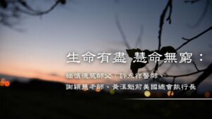 靜思精舍 德澡法師、慈濟慈善事業基金會宗教處 黃思浩 師兄、花蓮慈濟醫院 陳培容 副院長、慈濟大學 許木柱教授
